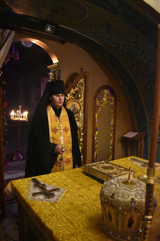 У переддень неділі владика Іоасаф очолив Всенічне бдіння, під час якого помазав віруючих освяченим на Літії єлеєм. Недільного дня за Літургією його Високопреосвященству співслужив благочинний Манявської обителі архимандрит Герасим, чернече духовенство у священичому сані та протодиякон Димитрій Луцак. Після часу Трисвятого, читання Апостола звершив насельник монастиря ієродиякон Іона. Проповідь перед причастям вірних виголосив ієромонах Іоасаф.