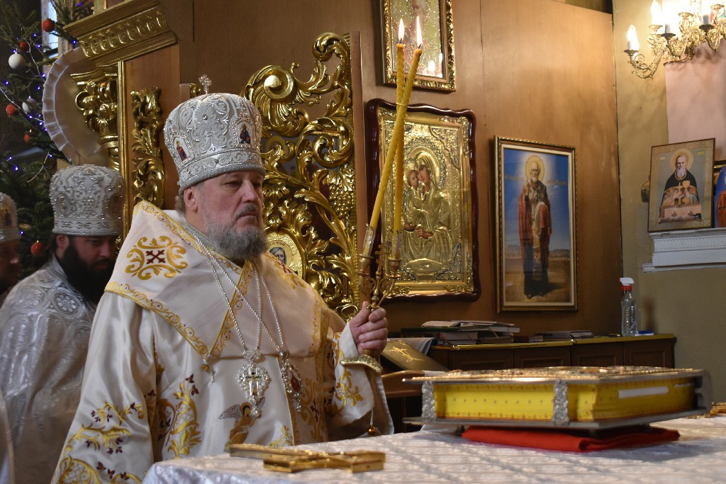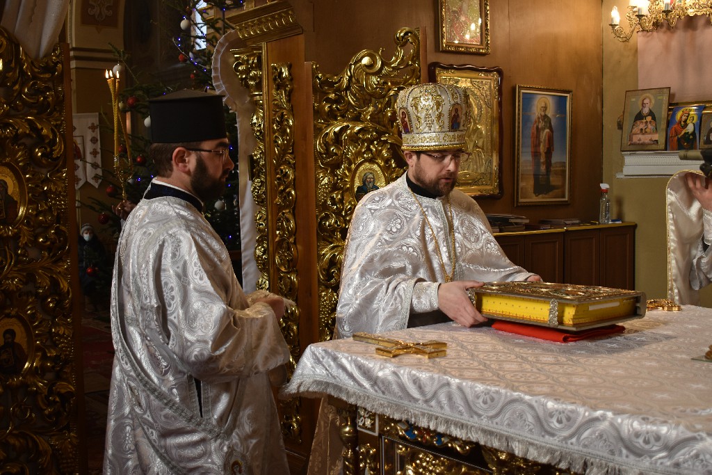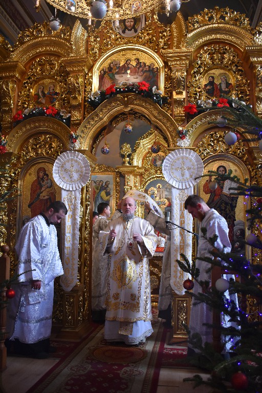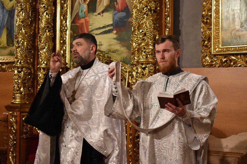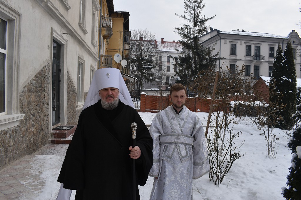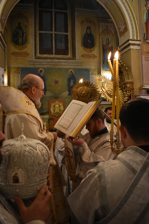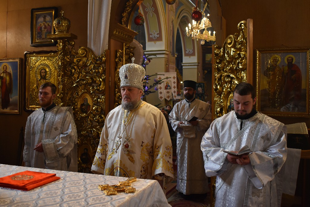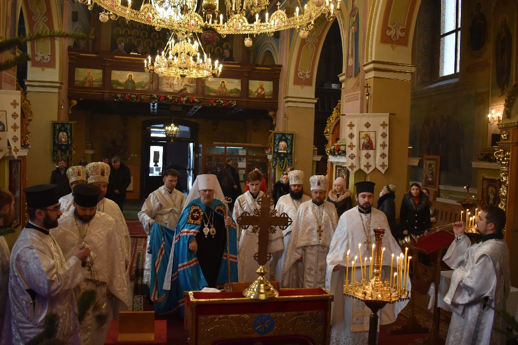 Його Високопреосвященству співслужив настоятель Кафедрального Собору протоієрей Іоан Телятинський та соборні священнослужителі. За службою Божою Апостола читав протодиякон Миколай Кармазін, а читання Євангелія звершив соборний протодиякон Петро Стецюк.