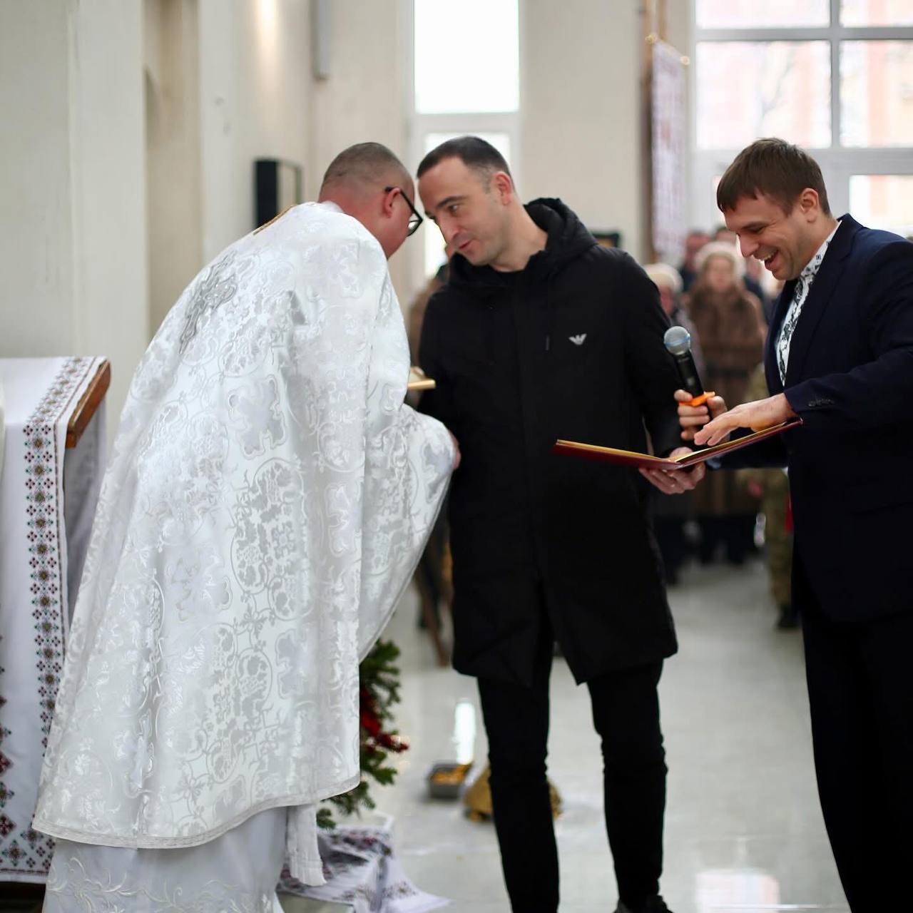 До нас завітали представники міської та обласної влади. Міський голова Руслан Марцінків та місцевий депутат Андрій Строїч. Мер нагородив нашого бойового капелана о. Олексія Писарчука високим званням «Людина року» за його відданість служінню та допомогу ближнім.