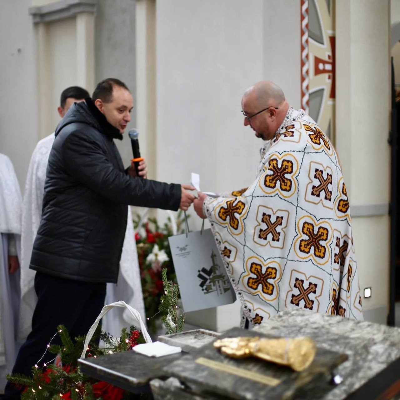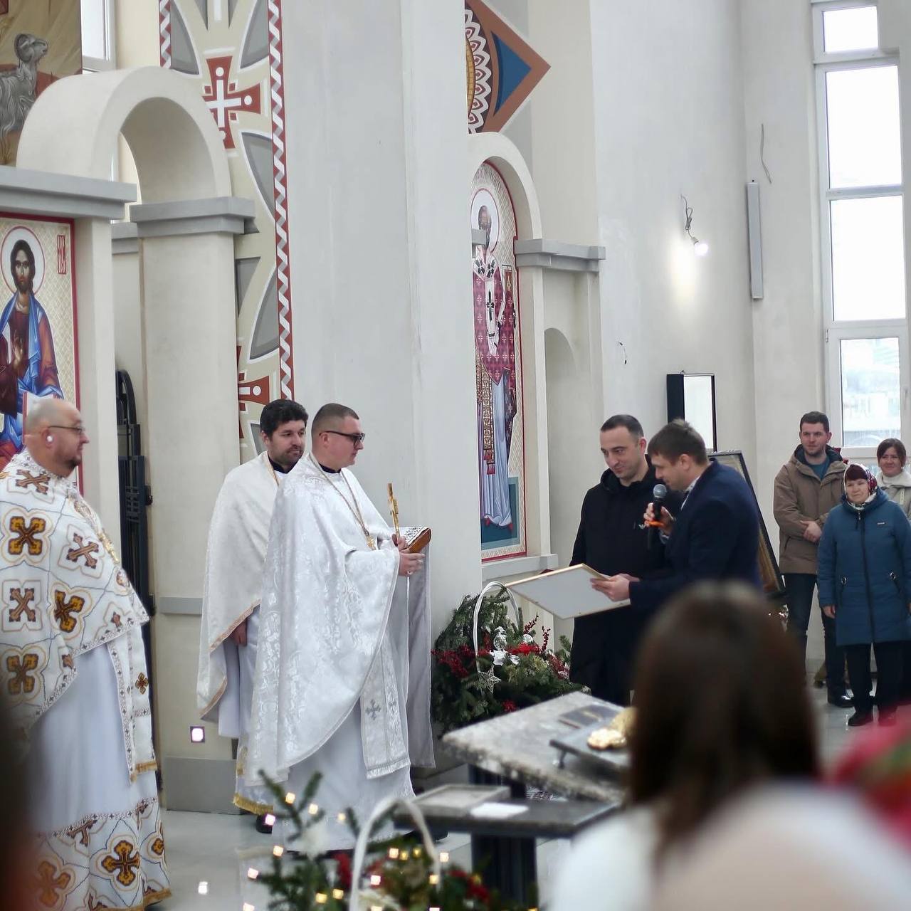 Керуючий справами обласної ради Михайло Королик разом із головою депутатської фракції ВО «Свобода» Ігорем Дебенком щиро привітали нашу громаду з храмовим святом. Вони вручили «Подяку від Івано-Франківської обласної ради» протоієрею Ростиславу Ільківу та церковнослужителю Павлу Федунишину за їхній внесок у духовний розвиток та соціальну підтримку.