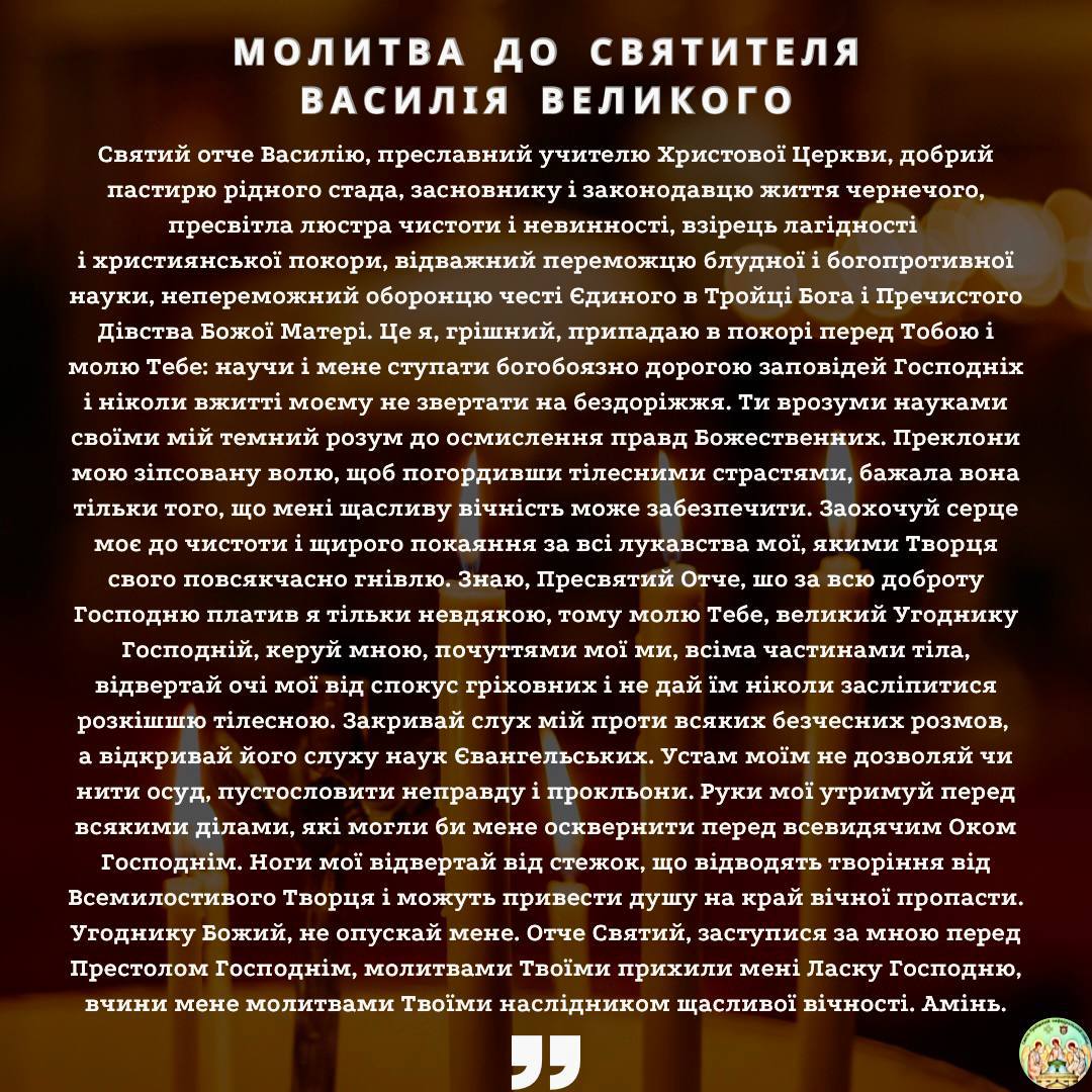 ВІТАЄМО УСІХ ІМЕНИННИКІВ З ДНЕМ НЕБЕСНОГО ПОКРОВИТЕЛЯ СВЯТИТЕЛЯ ВАСИЛІЯ ВЕЛИКОГО, АРХІЄПИСКОПА КЕСАРІЇ КАППАДОКІЙСЬКОЇ!