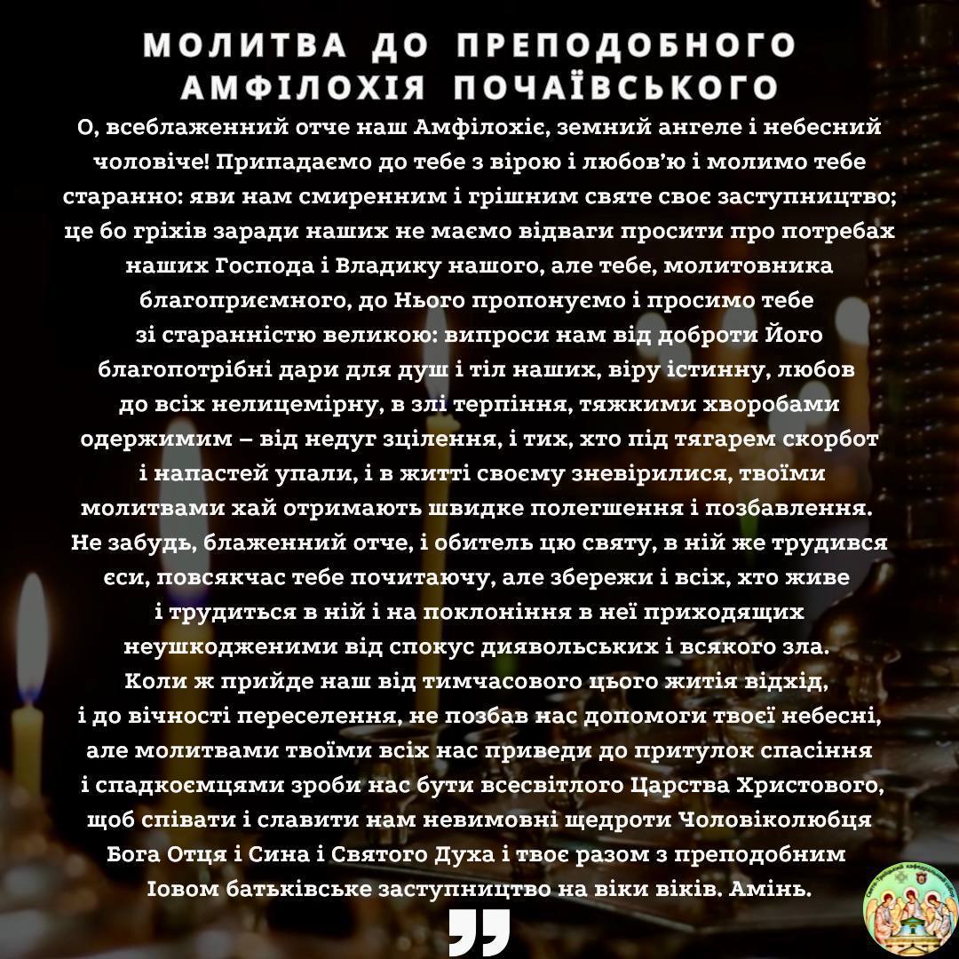Ще завтра Церква вшановує преподобного Амфілохія Почаївського, частиці святих нетлінних мощей якого зберігаються у Свято-Троїцькому кафедральному соборі.